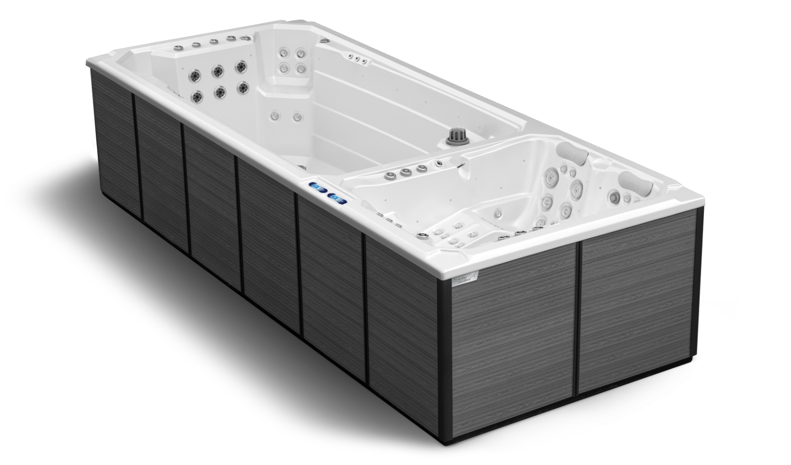 To niezwykłe centrum pływackie z podwójną strefą jest jednym z najchętniej wybieranych rodzinnych Spa, które łączy w sobie trening, rekreację oraz relaks. Dzięki inteligentnym, energooszczędnym systemom, urządzenie samo się czyści, a każda część - luksusowa wanna z hydromasażem oraz basen - oferuje niezależne ustawienia temperatury wody. Unikalna wewnętrzna izolacja CA pozwala korzystać z basenu przez cały rok bez dodatkowych kosztów eksploatacyjnych. Co więcej, istnieje możliwość podłączenia basenu do alternatywnych źródeł energii, co zwiększa jego wszechstronność i efektywność.